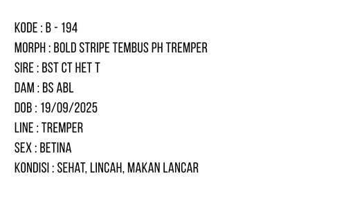 / B-194 | BOLD STRIPE TEMBUS POSSIBLE HET. TREMPER – INC. BETINA