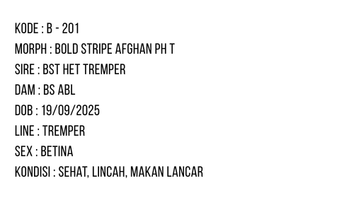 B-201 | BOLD STRIPE AFGHAN POSSIBLE HET. TREMPER – INC. BETINA