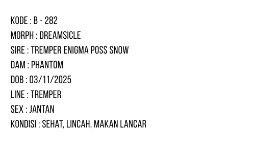 / B-282 | ALBINO TREMPER ENIGMA – INCUB. JANTAN