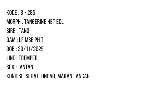 / B-285 | TANGERINE HET. ECLIPSE – INCUB. JANTAN