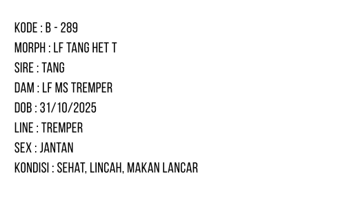 / B-289 | LEMON FROST HET. TREMPER – INCUB. JANTAN