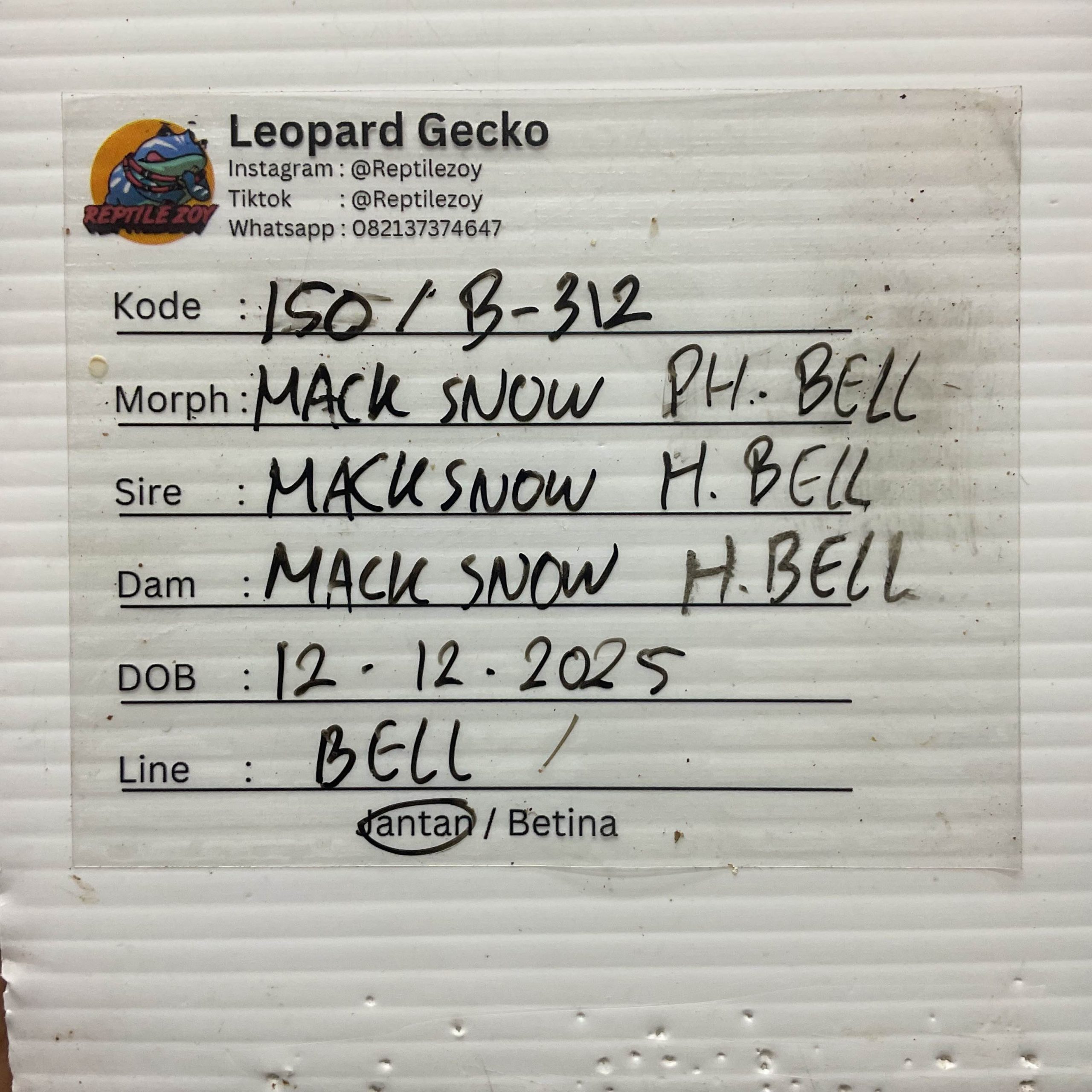 B-312 | MACK SNOW POSSIBLE HET. ALBINO BELL – INCUB. JANTAN