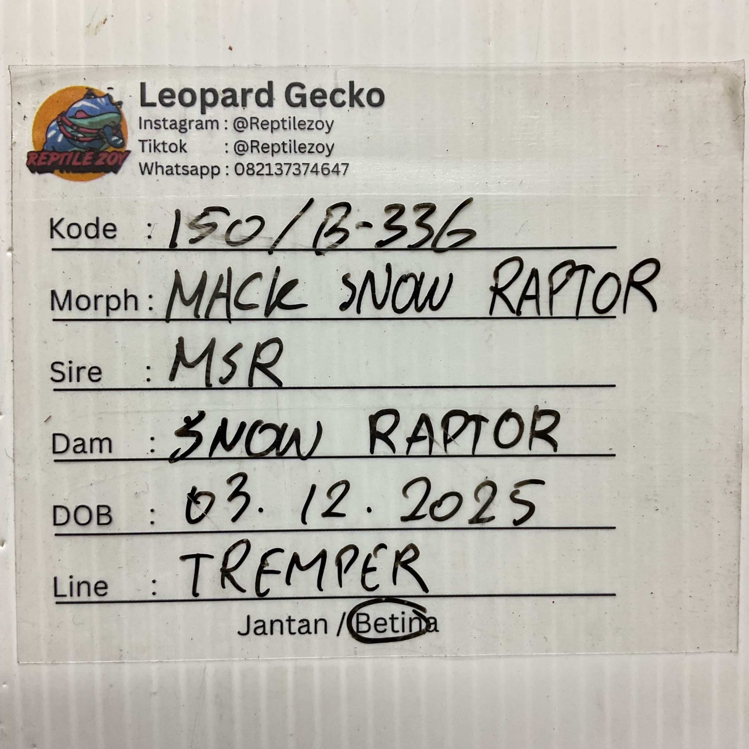 / B-336 | MACK SNOW RAPTOR – INCUB. BETINA