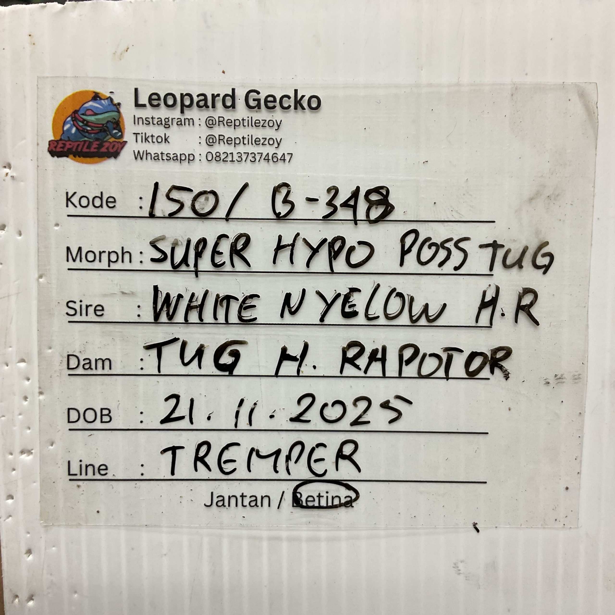 / B-348 | SUPER HYPO POSSIBLE TUG POSSIBLE HET. RAPTOR – INCUB. BETINA