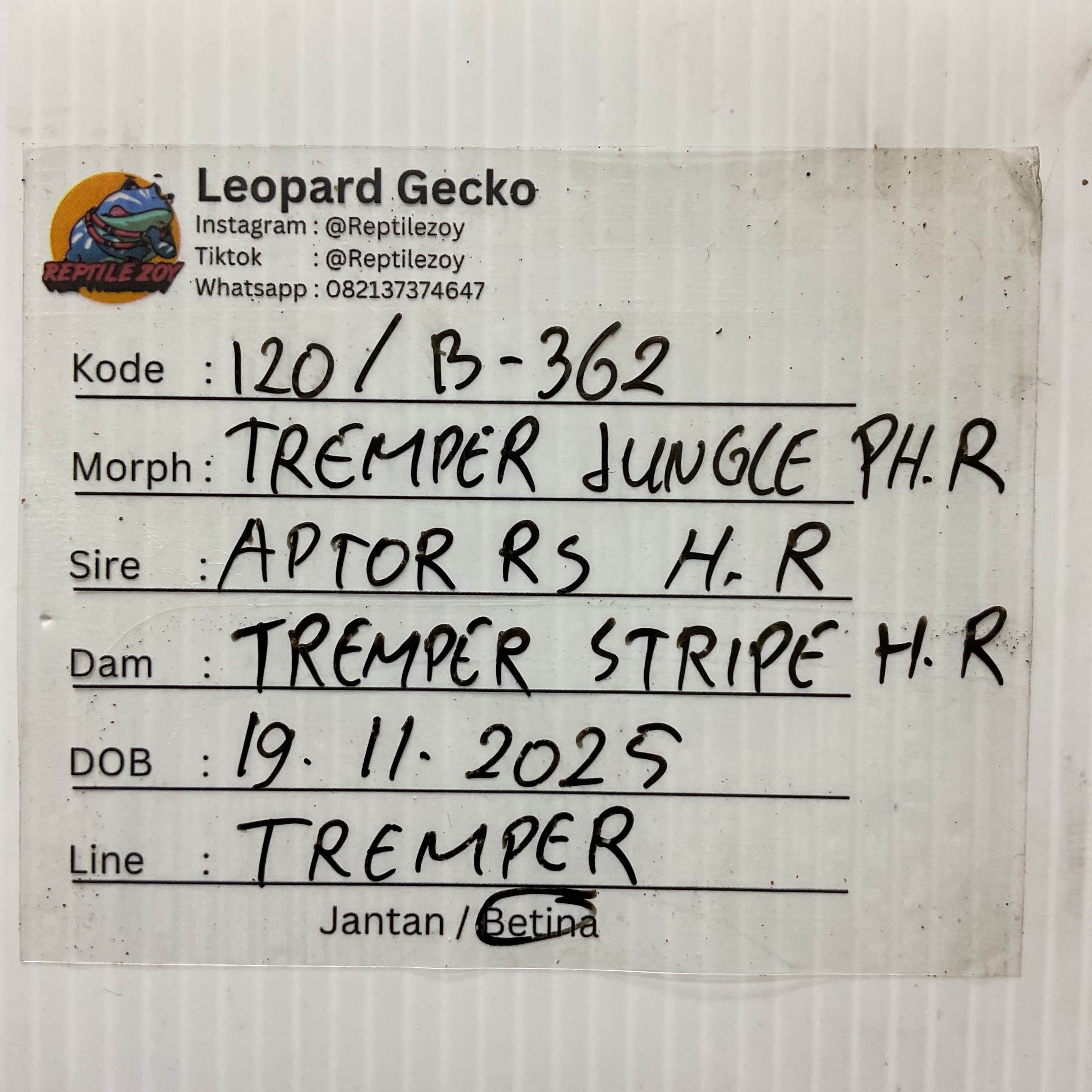 / B-362 | ALBINO TREMPER JUNGLE POSSIBLE HET. TREMPER – INCUB. BETINA