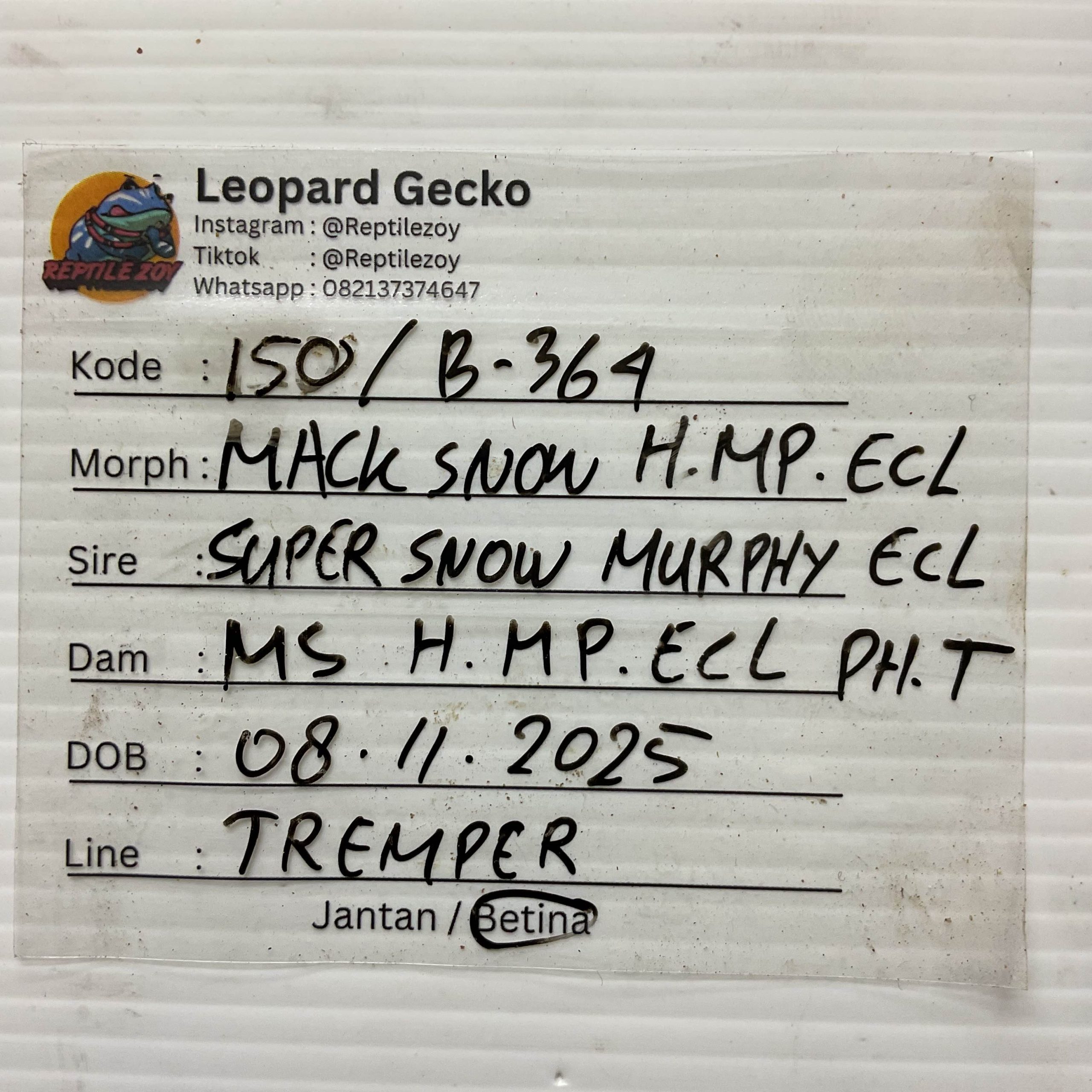 B-364 | MACK SNOW HET. MURPHY ECLIPSE – INCUB. BETINA