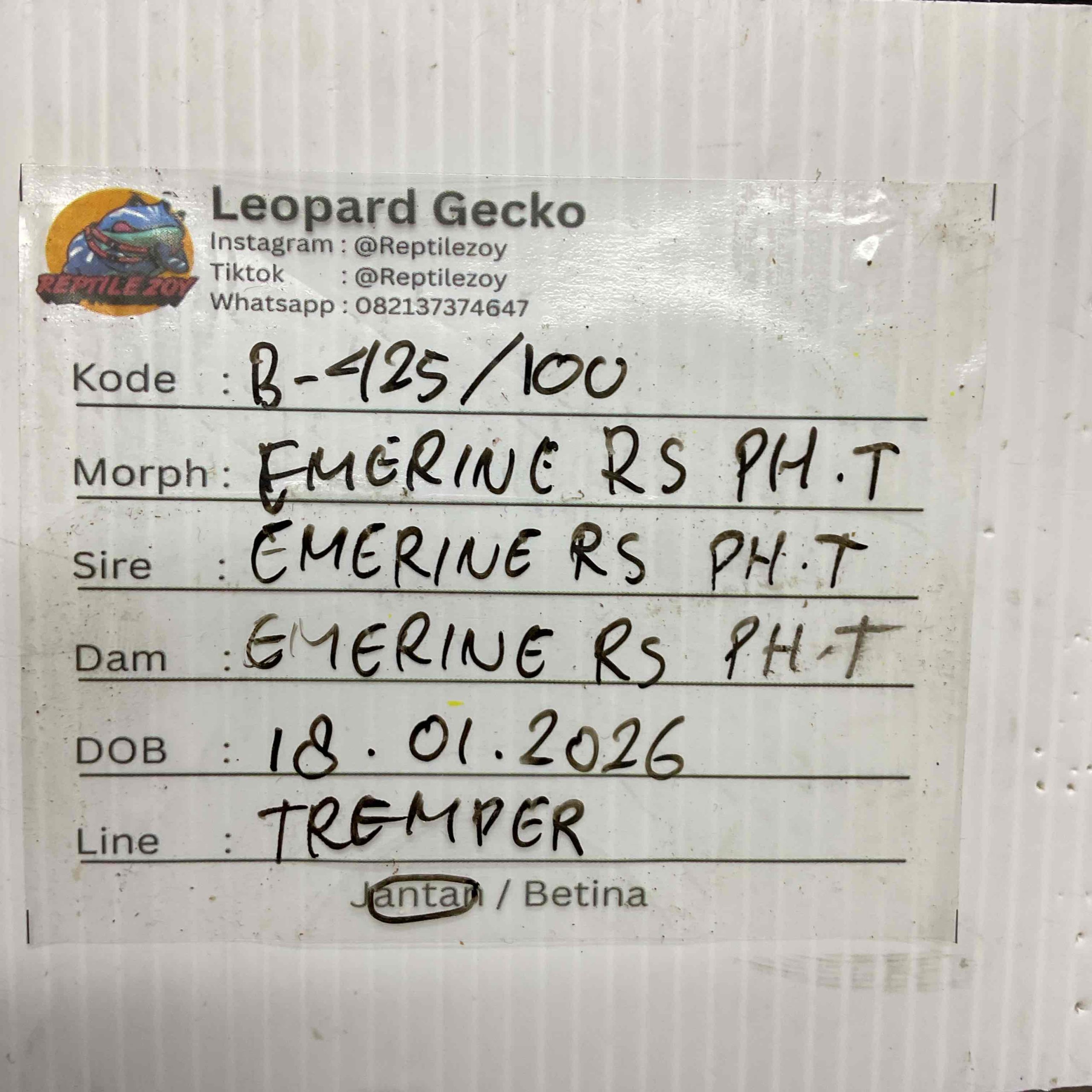 / B-425 | EMERINE RED STRIPE POSSIBLE HET. TREMPER – INCUB. JANTAN