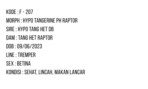 / F-207 | HYPO TANGERINE POSSIBLE HET. RAPTOR – BETINA OVUL