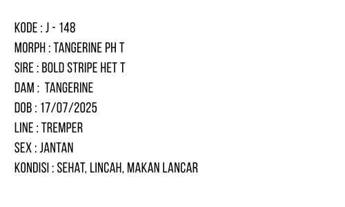 / J-148 | TANGERINE POSSIBLE HET. TREMPER – JANTAN