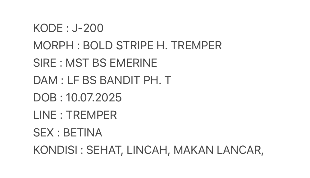 / J-200 | BOLD STRIPE HET. TREMPER – BETINA