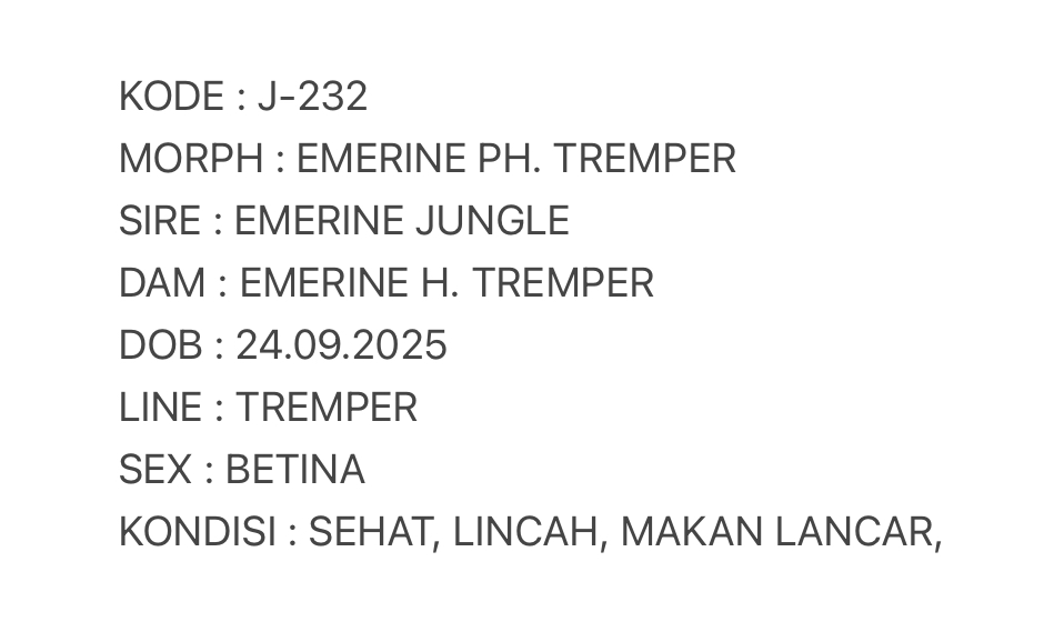 / J-232 | EMERINE POSSIBLE HET. TREMPER – BETINA