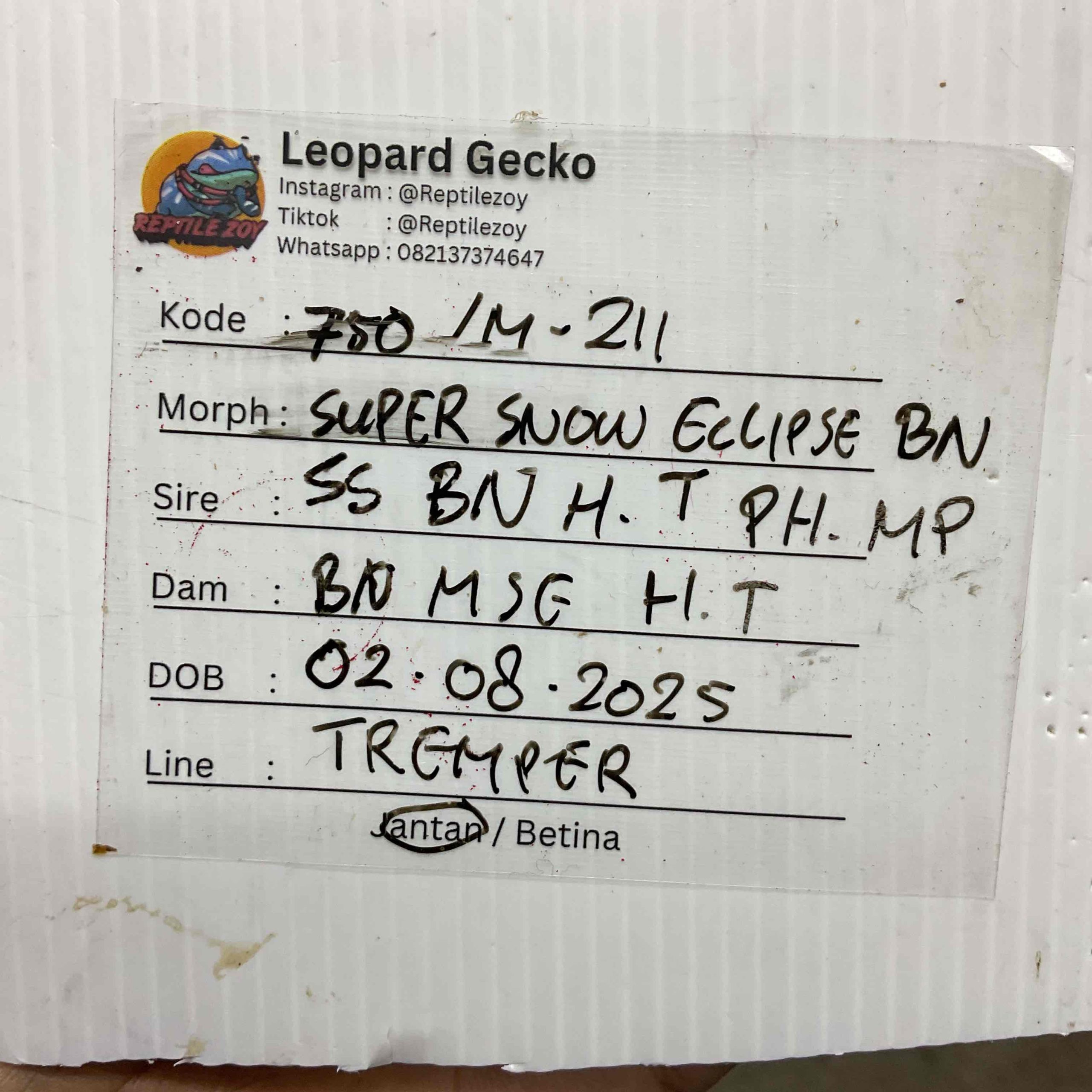 M-211 | SUPER SNOW ECLIPSE BLACK NIGHT POSSIBLE HET. TREMPER – JANTAN