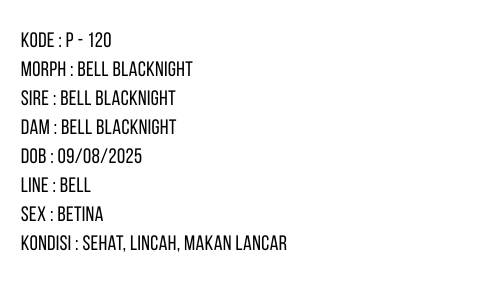 P-120 | ALBINO BELL BLACK NIGHT -INCUB BETINA | MINUS TIPIS quantity
