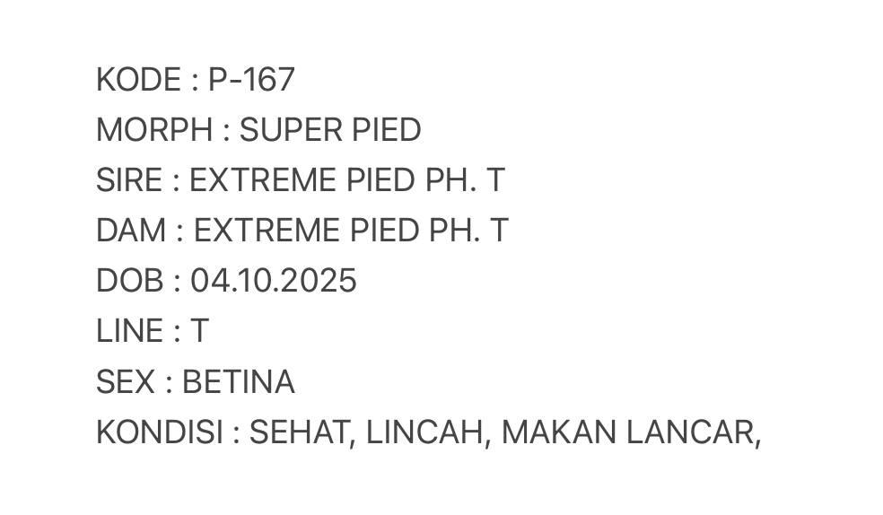 / P-167 | SUPER PIED POSSIBLE HET. TREMPER – BETINA