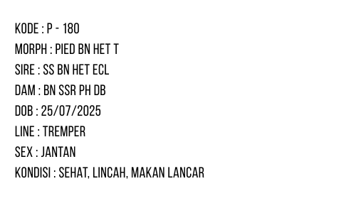 P-180 | PIED BLACK NIGHT/ SUPER SNOW ECLIPSE BLACK NIGHT/ PANDA HET. TREMPER – JANTAN