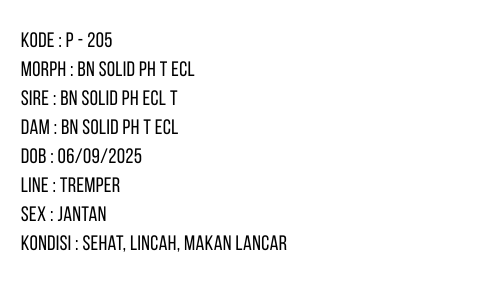 P-205 | BLACK NIGHT SOLID POSSIBLE HET. TREMPER ECLIPSE - JANTAN quantity