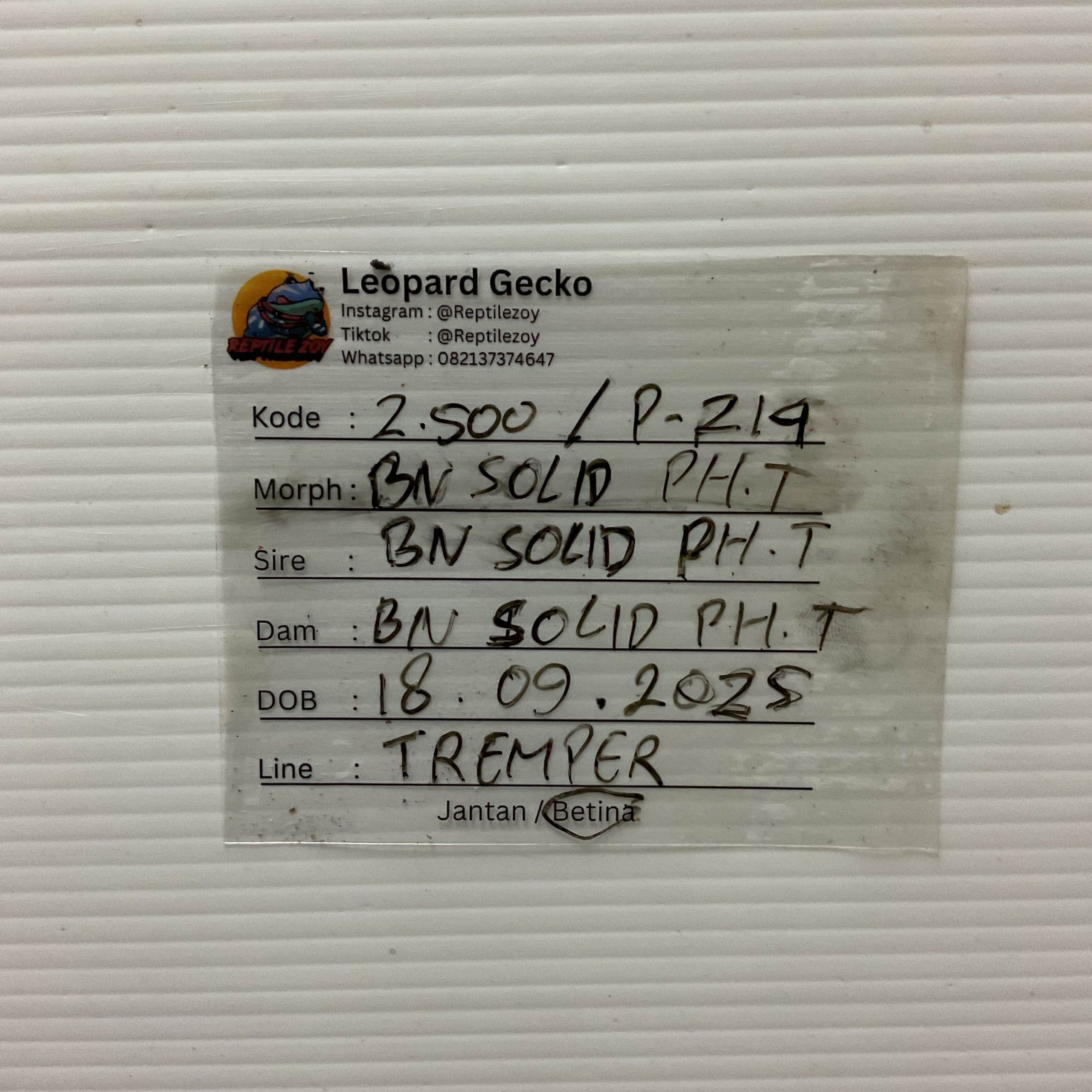 / P-214 | BLACK NIGHT SOLID POSSIBLE HET. TREMPER – INCUB. BETINA