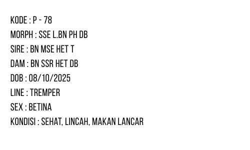 P-78 | SUPER SNOW ECLIPSE/ PIED LINE BLACK NIGHT POSSIBLE HET. DIABLO BLANCO – INC. BETINA